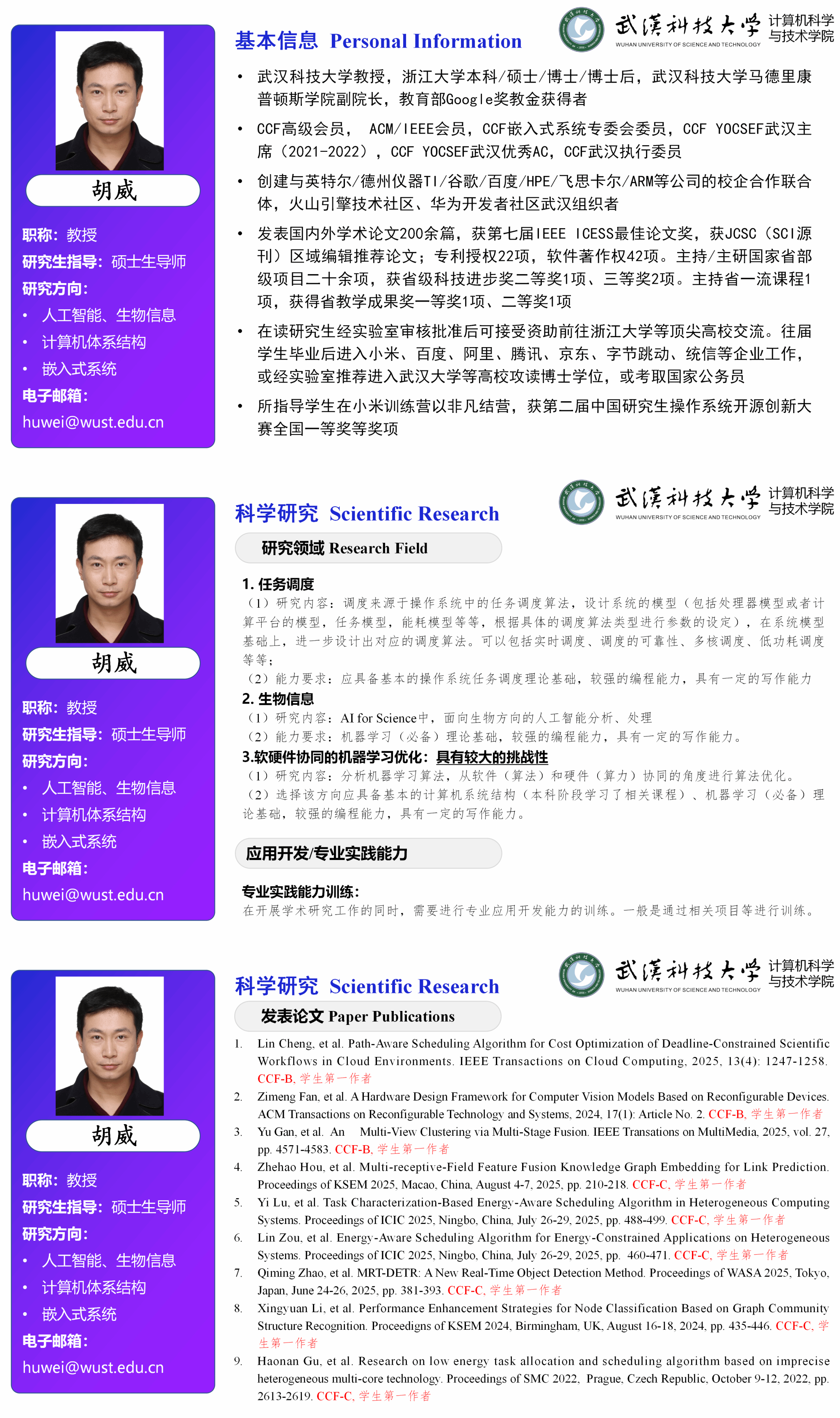 胡威-教授
